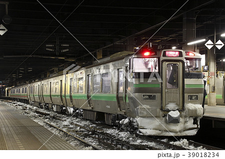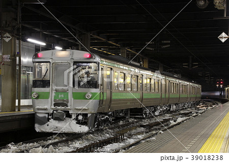 冬の新千歳空港駅に停車中の千歳線733系電車