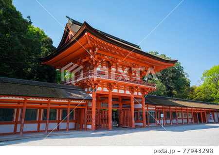 京都 下鴨神社の摂社 河合神社の鳥居と新緑