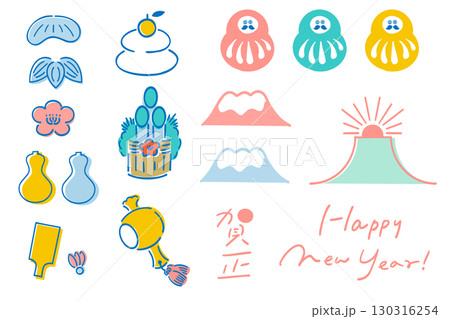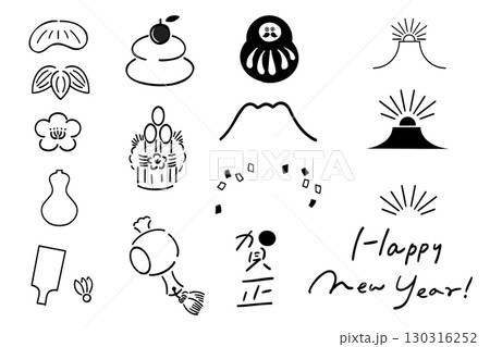 年賀状・新年のポップなパーツ_線画
