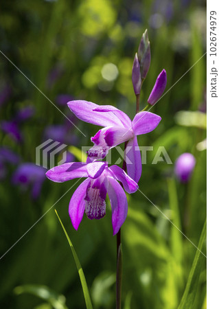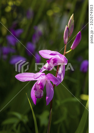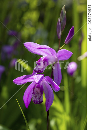 初夏に赤紫の可憐な花を咲かせる、シラン