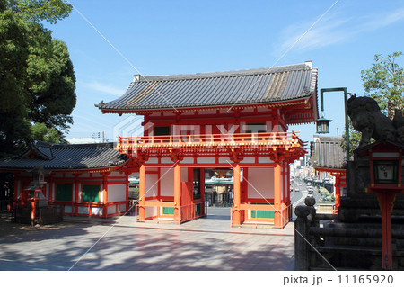 境内から見た八坂神社の「西楼門」(京都市東山区祇園町)