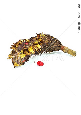 風変りな木の実・ホオノキの熟した果実・縦位置