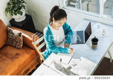 テレワークをする女性のポートレート