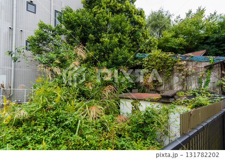 木に覆われた廃屋