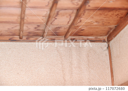 天井と壁に残る雨漏りの痕跡