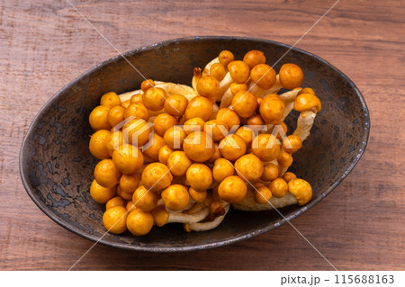 Fresh raw pioppini mushrooms background texture in restaurant.