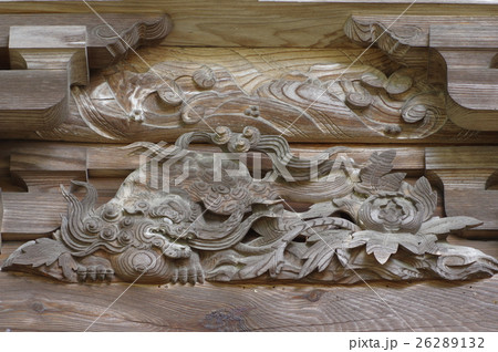 信州 安曇野 池田町の渋田見諏訪神社 大隅流の彫刻が見事な江戸時代の本殿 獅子と獏の彫刻