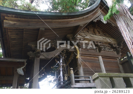 信州 安曇野 池田町の渋田見諏訪神社 大隅流の彫刻が見事な江戸時代の本殿 右俯瞰横
