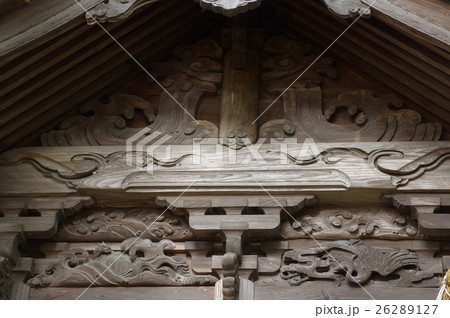 信州 安曇野 池田町の渋田見諏訪神社 大隅流の彫刻が見事な江戸時代の本殿 海老虹梁と彫刻