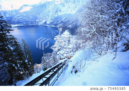 Hallstatt lake and the frozen forest