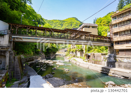杖立温泉 紅葉橋が見える風景 熊本県阿蘇郡小国町