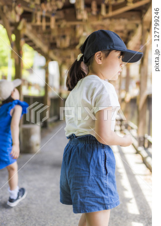 家族で訪れる杖立温泉の初夏の観光スナップ