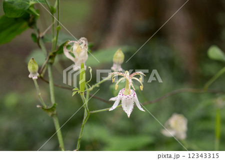 日陰に咲く杜鵑草(ホトトギス)の花
