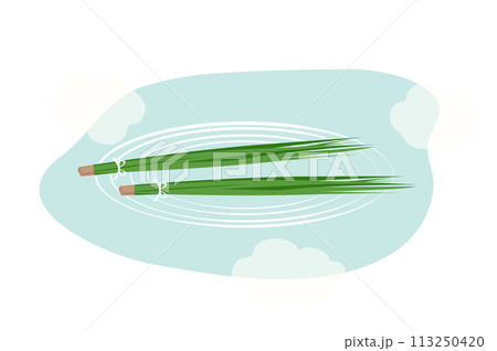 束ねたレモングラスのイラスト 市場で売られているフレッシュハーブの束