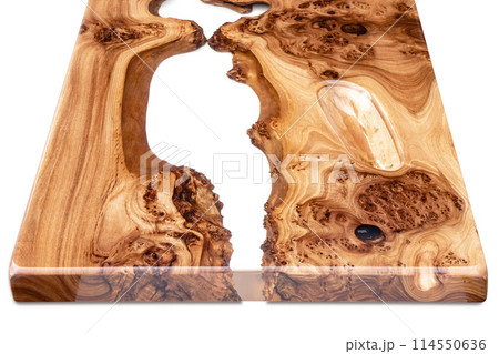 木目や杢があり高級感のある白木色の木製テーブルの天板の横長の背景画像