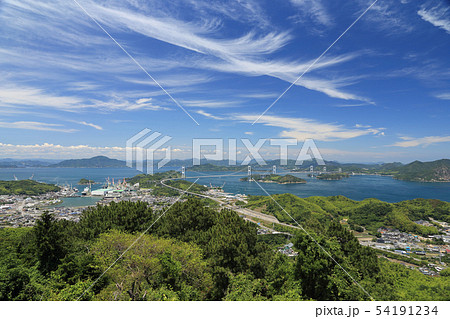 愛媛県今治市来島海峡大橋SAから見たしまなみ海峡大橋