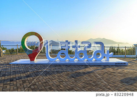 愛媛県今治市来島海峡大橋SAのひらがなしまなみモニュメント