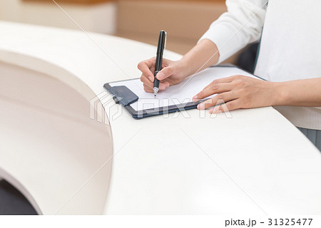 記入する女性の手元。申し込み、契約、問診