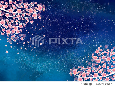 夜桜:桜 花見 桜まつり お花見 4月 春 早春 桜吹雪 フレーム 満開