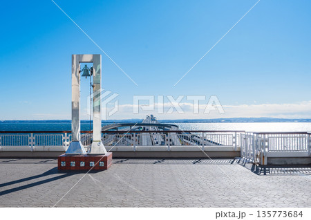東京湾アクアライン 海ほたるの幸せの鐘と青い海