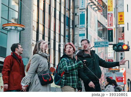 インバウンド スマホを見ながら東京の街を散策する外国人