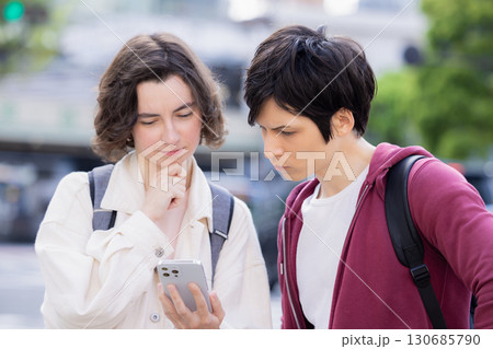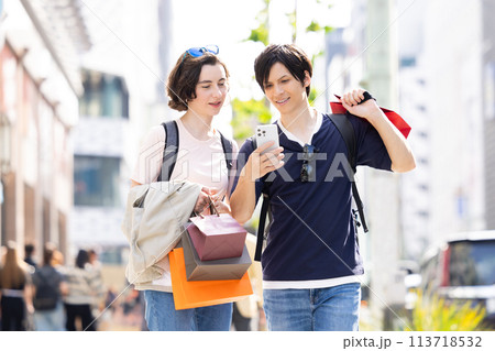 インバウンド スマホを見ながら東京の街を散策する外国人