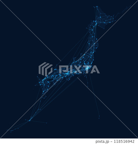 デジタルネットワークを表現した、日本列島のドットマップ