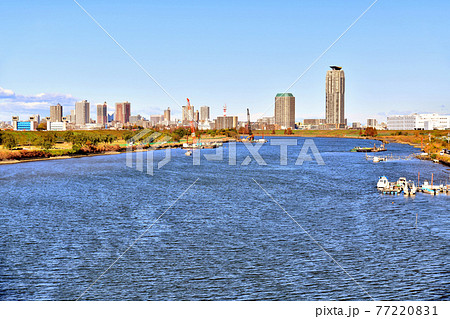 鹿浜橋より川口市中心街方面を望む(東京都足立区)【2020.11】