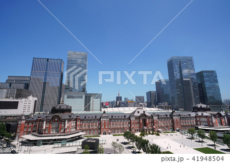 日本の東京都市景観 東京駅丸の内北口などを望む。関連検索は東京駅前リニューアル風景写真