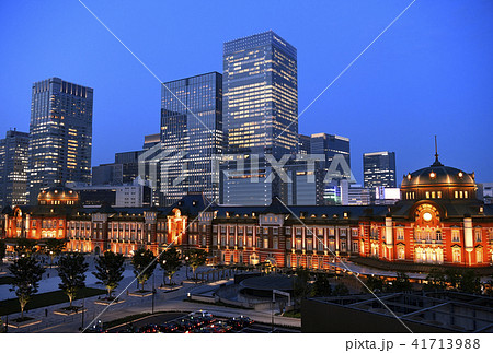 日本の東京都市景観 東京駅の夜景。関連P検索は東京駅前リニューアル風景写真