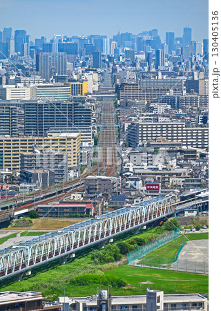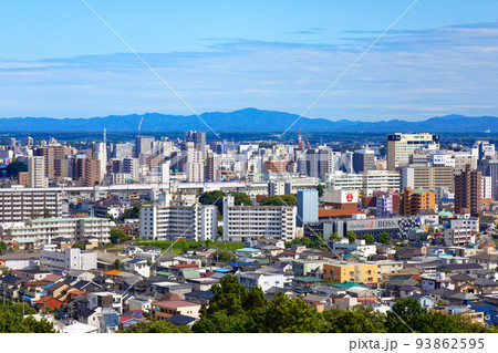 宇都宮タワーより山形新幹線とJR宇都宮駅方面の街並みを望む