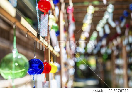 夏の熊野神社(熊野大社) 風鈴の飾り「かなで」 山形県南陽市