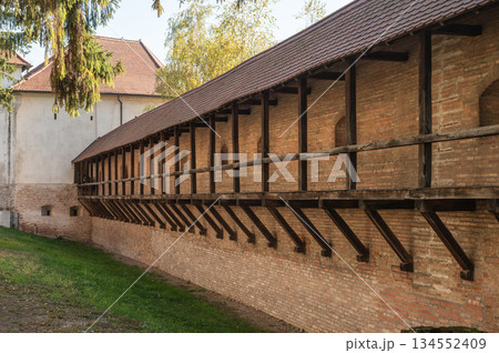 Historic Transylvanian Fortress Targu Mures Defensive Walls and Arches Under Clear Sky