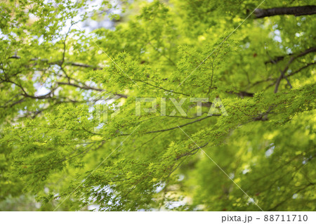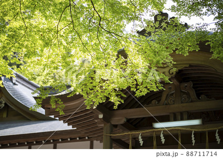 大阪府東大阪市出雲井町にある枚岡神社の新緑の青紅葉