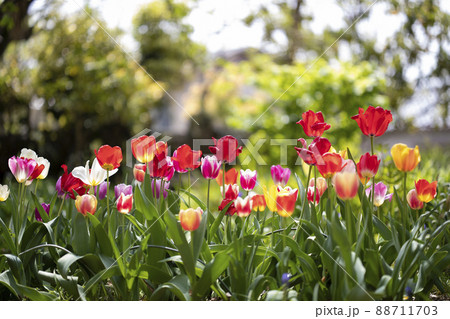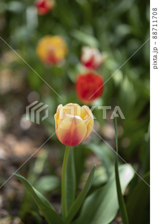 大阪府東大阪市出雲井町にある枚岡神社に咲くチューリップ