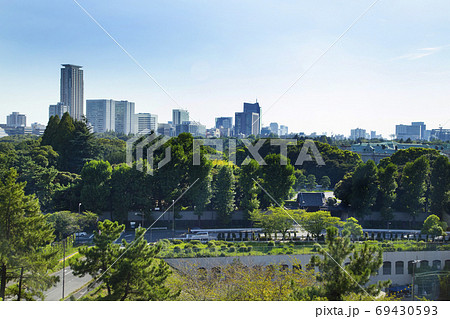 東京都市風景 春の新緑 六本木から望む都心全景 皇居や丸の内方面を望む