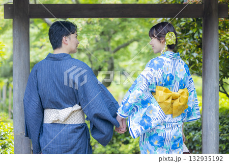 浴衣を着た男女