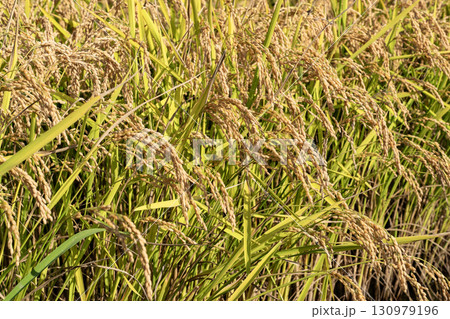 秋の稲刈りを待つ黄金色に染まった稲穂