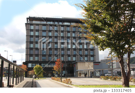 JR高山駅前の駅前広場とホテル