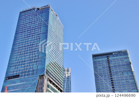 浜松町駅、竹芝駅近くの超高層ビル、東京ポートシティ竹芝オフィスタワー 建物外観。ガラス張りのビル