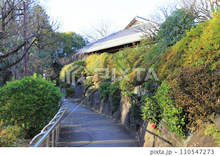 世田谷・羽根木公園の梅と梅ヶ丘駅口の街並み