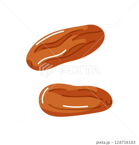 Whole brown dates in cartoon style isolated on white background. Traditional dried fruit for cooking snack or Jewish holiday Rosh Hashanah themes.