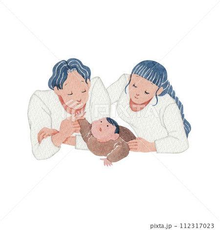 赤ちゃん 子ども 家族 両親 人物 水彩 イラスト