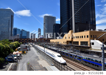 JR浜松町駅付近を走行する東海道新幹線