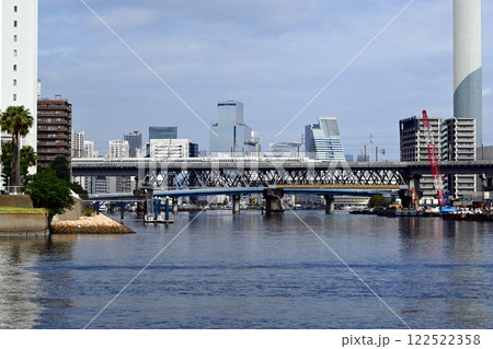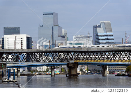 京浜運河橋梁を渡る回送中の東海道新幹線