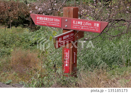 山の辺の道 行先表示板 なら歴史芸術文化村 石上神宮 桜井 夜都伎神社 東海道自然歩道