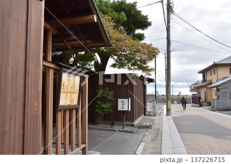 愛知県 知立の松並木と側道と観光案内板と東屋