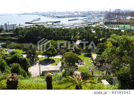 鹿児島市多賀山公園から石橋公園と市街地を見下ろす