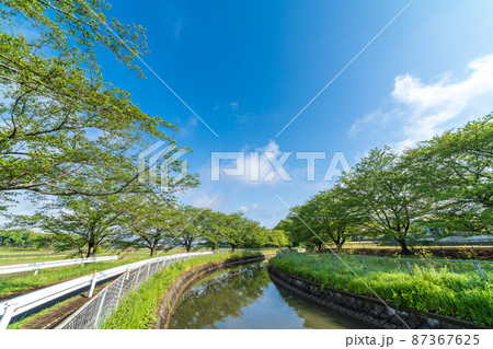 「埼玉県」見沼代用水東縁沿いに並ぶ新緑の並木