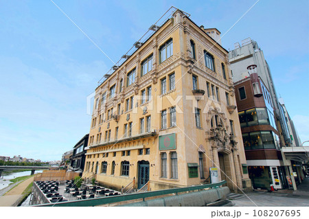 京都のまちなみ 四条河原町 東華菜館 四条大橋からの鴨川側の東面 レトロモダン建築